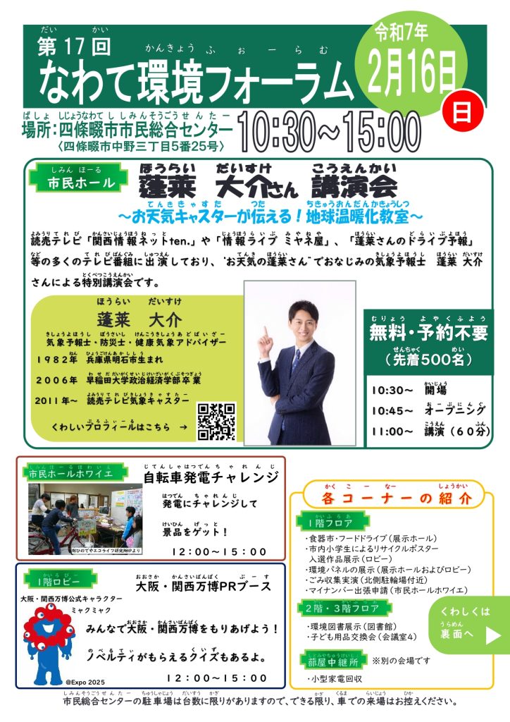 「なわて環境フォーラム」お天気キャスターの蓬莱さんの講演も
